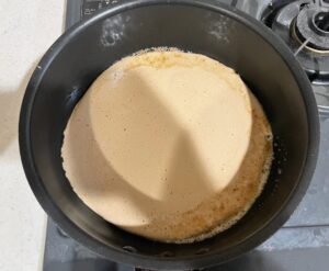【2】フライパンに事前にバターやオイルなどを敷いて、流し込む。